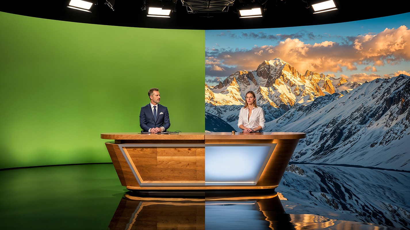 Type what you need: "warm newsroom with wood accents" or "sleek tech studio with LED panels" and MirageSet's AI generates a photorealistic environment in seconds. Then fine-tune everything: adjust lighting, swap materials, lock in your brand colors. Full creative control, AI speed.